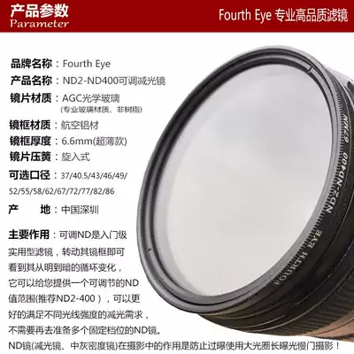 Fourth Eye Ultra-thin adjustable ND2-400 reducer 58 single Eye 67 universal Nikon 52 77mm82 filter