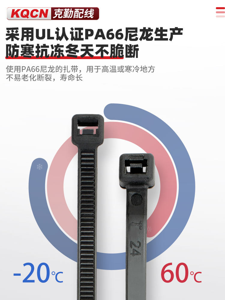 Industrial grade PA66 nylon tie wholesale strangle black national standard high - strength self - lock mouth wiring button
