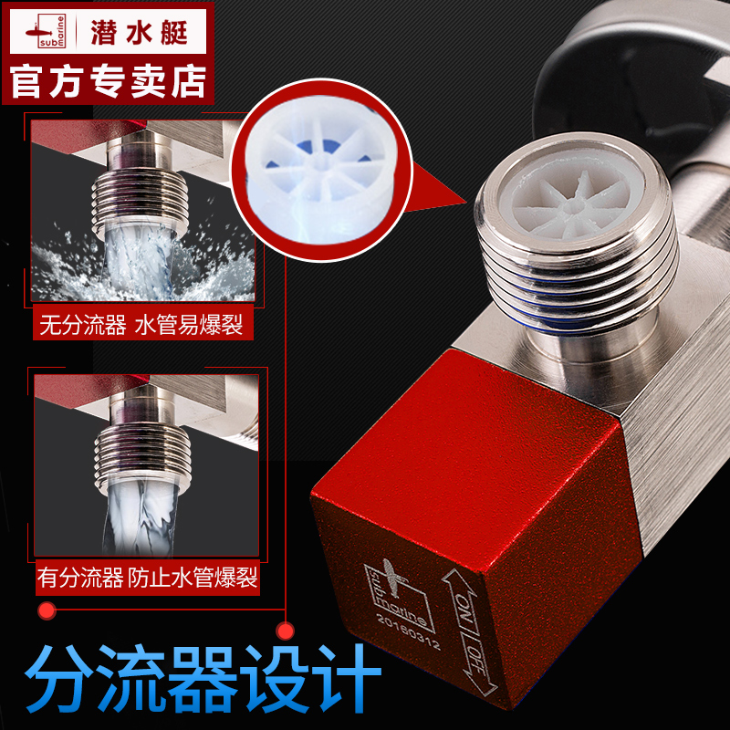 Diving boat triangle valve F301 with F302 full copper thickened hot and cold water eight-word valve anti-freeze and water-stop valve
