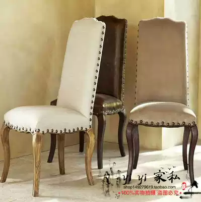 American country pu leather solid wood dining chair Simple economical adult high-back chair flannel single retro book chair