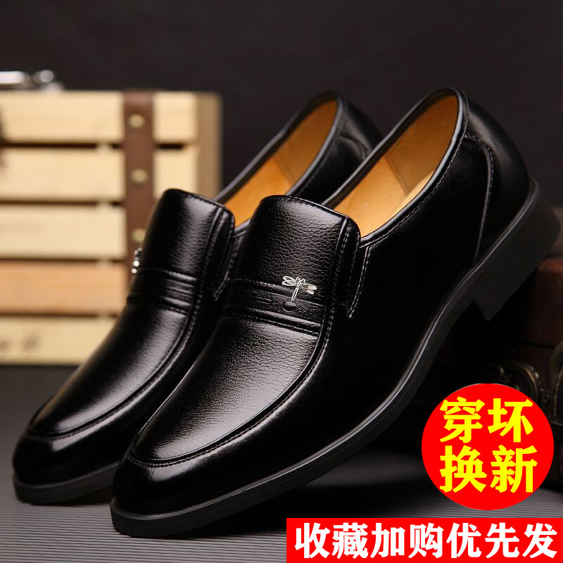 Dragonfly Truffle Men Leather Shoes Leather Business Positive Dress Casual Winter Plus Suede Cotton Shoes Big Code Middle Aged Dad Shoes