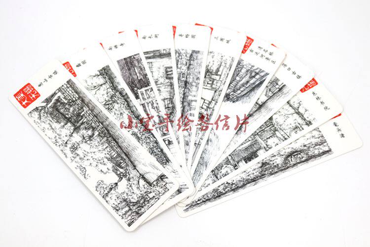 Wuxi pen drawing on the tip of the hand-painted city travel bookmark 12 sheets into the cover of all the attractions of Xicheng