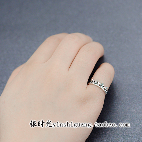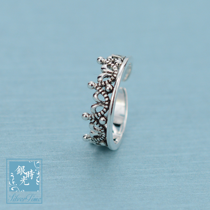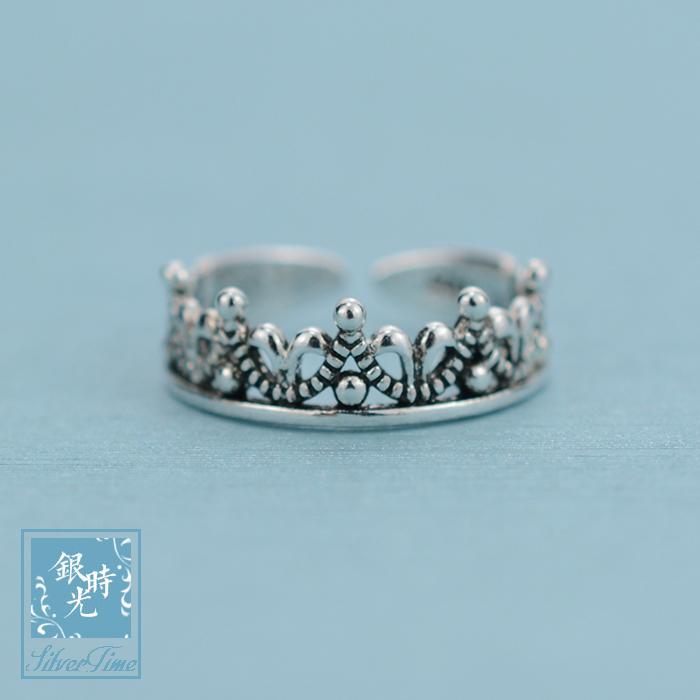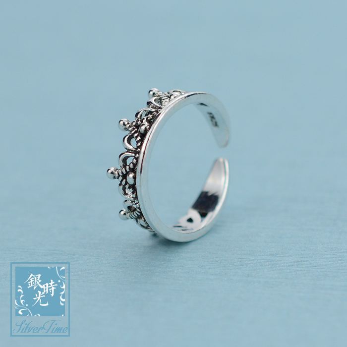 Silver time S925 sterling silver ring Thai silver carved crown ring retro fashion open ring personality tail ring female