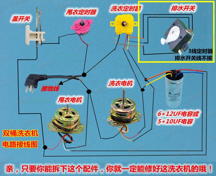 Sol Washing Machine Timer 6 Wire 3 Wire Fit Small Duck Small Swan Timing Switch Semiautomatic Double Cylinder Laundry