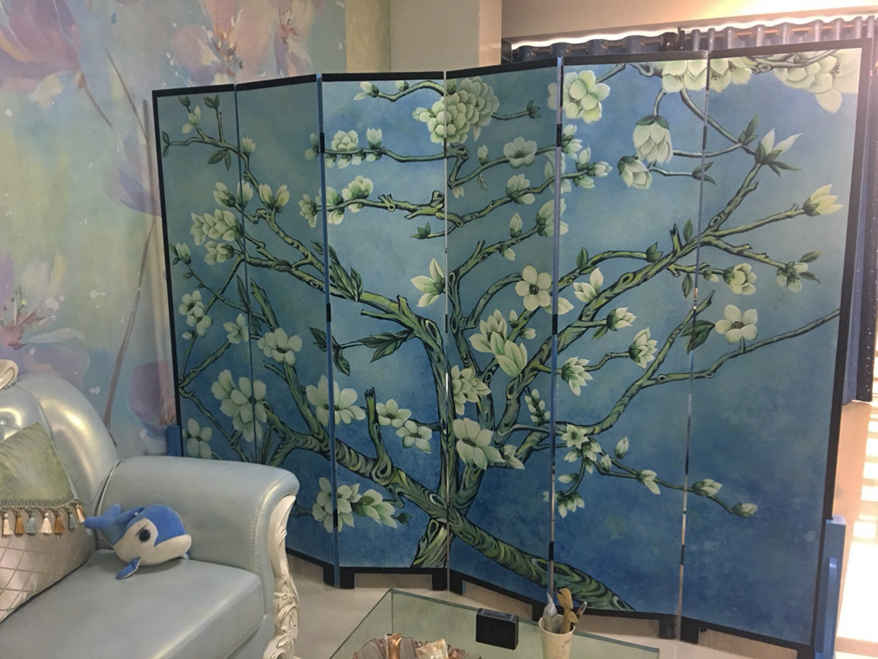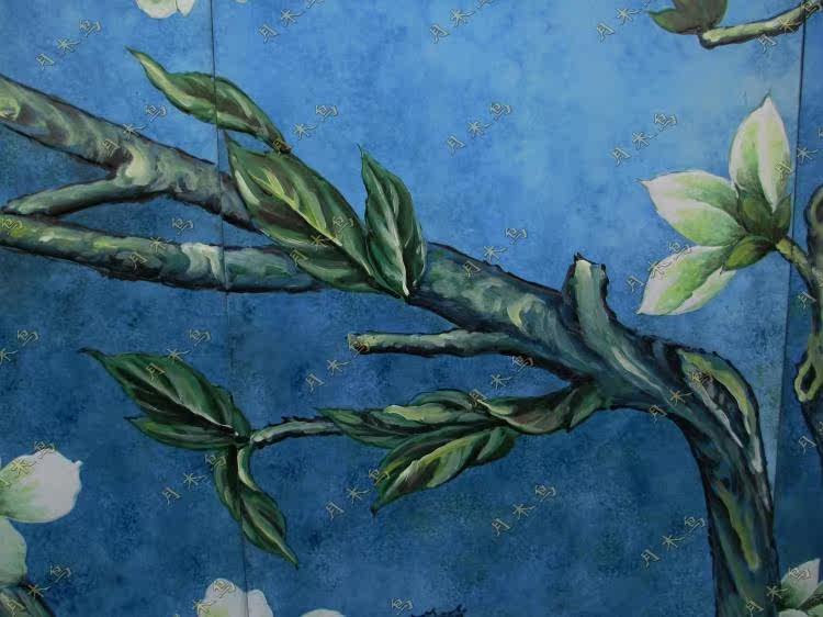 Blue Effect Relief Lacquer Painting Mediterranean European Hand-painted Magnolia Hotel Villa Custom Environmental Protection Screen