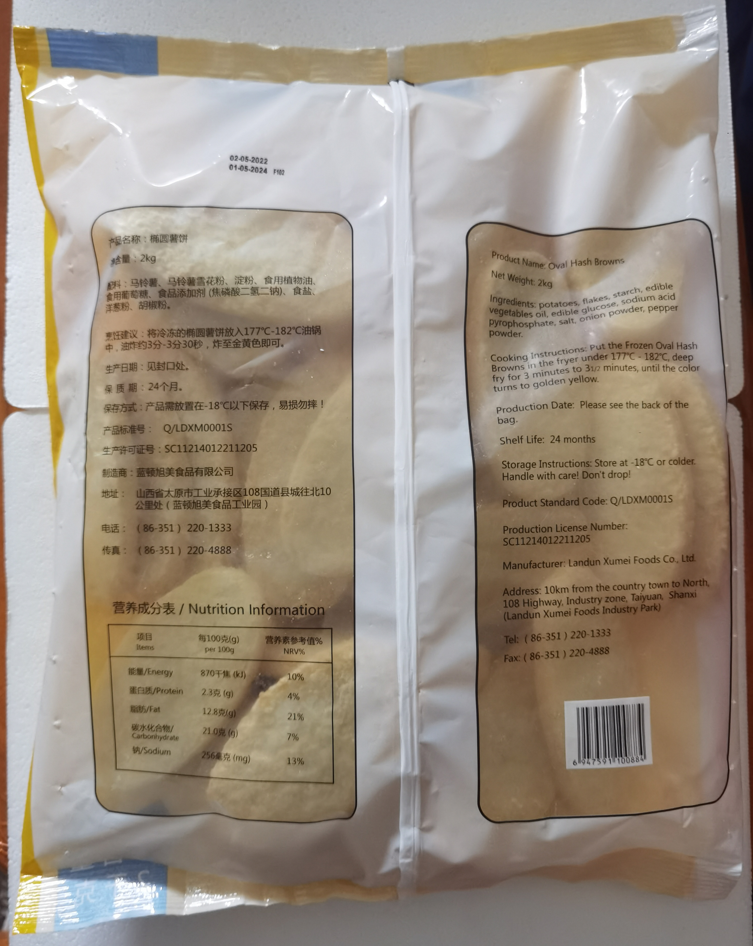 Blue Ton Xumei Breakfast Oval potato cake Mcwheat Potato Cake Frozen Potato Tuber about 35 strips 2 1000gr Mino Heart