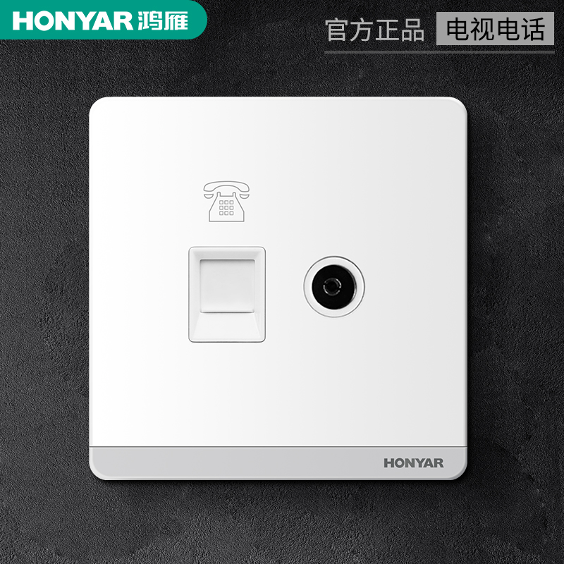 Hongyan switch socket large panel Yabai wall dark closed circuit telephone two-in-one 86 type TV telephone socket