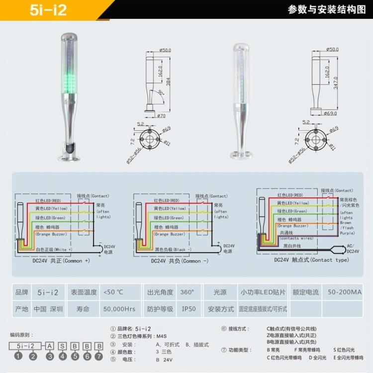 ONNM4S New 5I-I2 LED Tri-color Alarm Light Machine Tool Signal Light 3-Color Warning Light with Beep 24Vdc