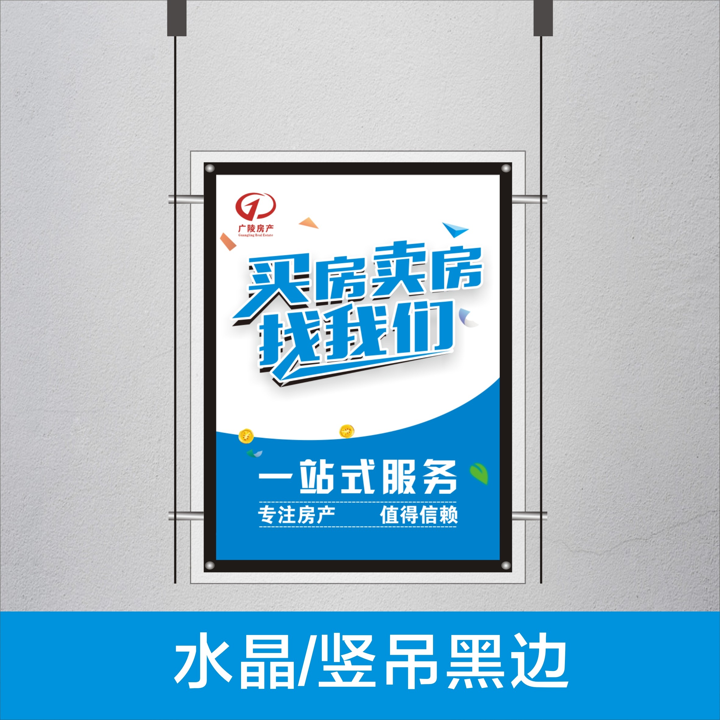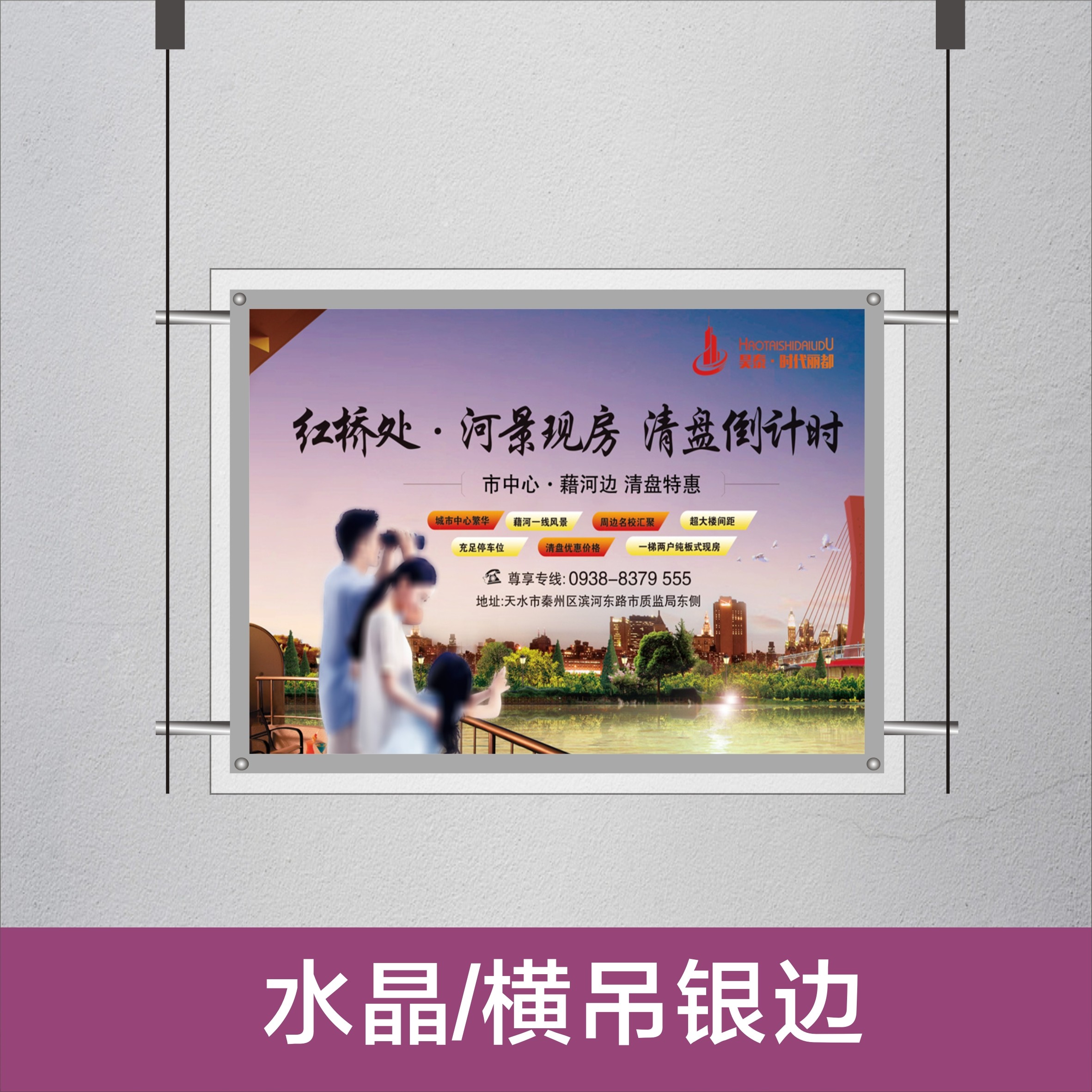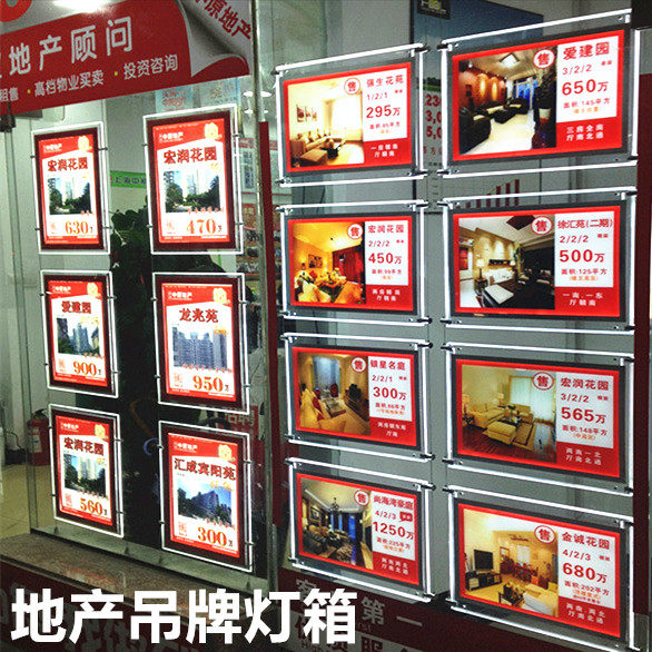 LED Real Estate Intermediary Shop Window House Source Crystal Acrylic Pendant Steel Wire Advertising Display Card Hanger Ultra-thin Light Box