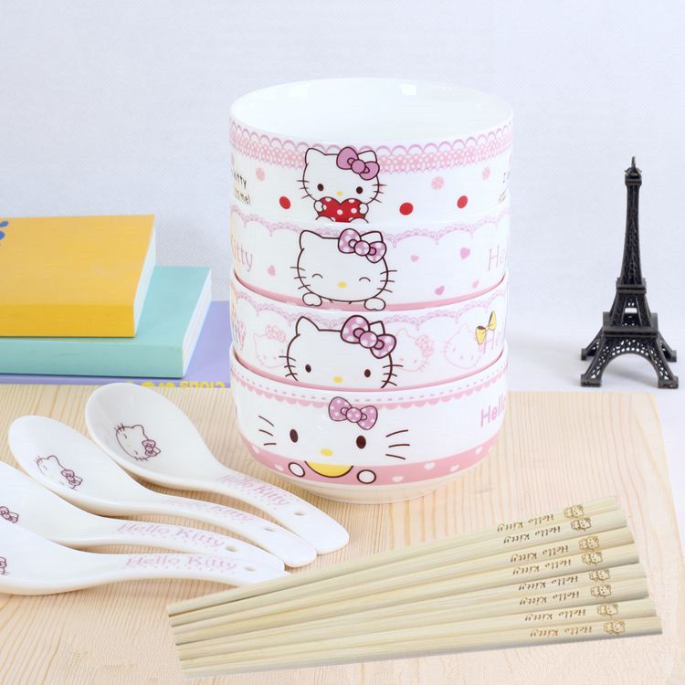 New Products Creativity Cartoon Cute Spoon Dish Ceramic Bowl Cutlery Rice Bowl Suit 18 pieces for home students