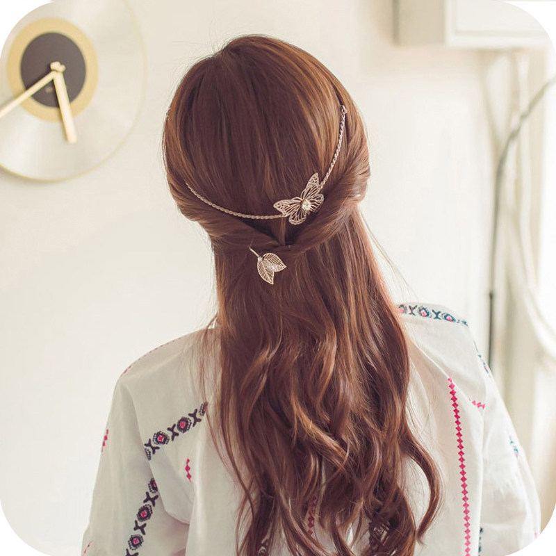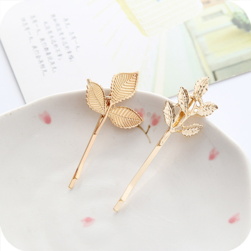 Korean trinkets headdress Vintage gold leaf hair clip Hair clip Sen Female bangs bow hair trim clip hair clip