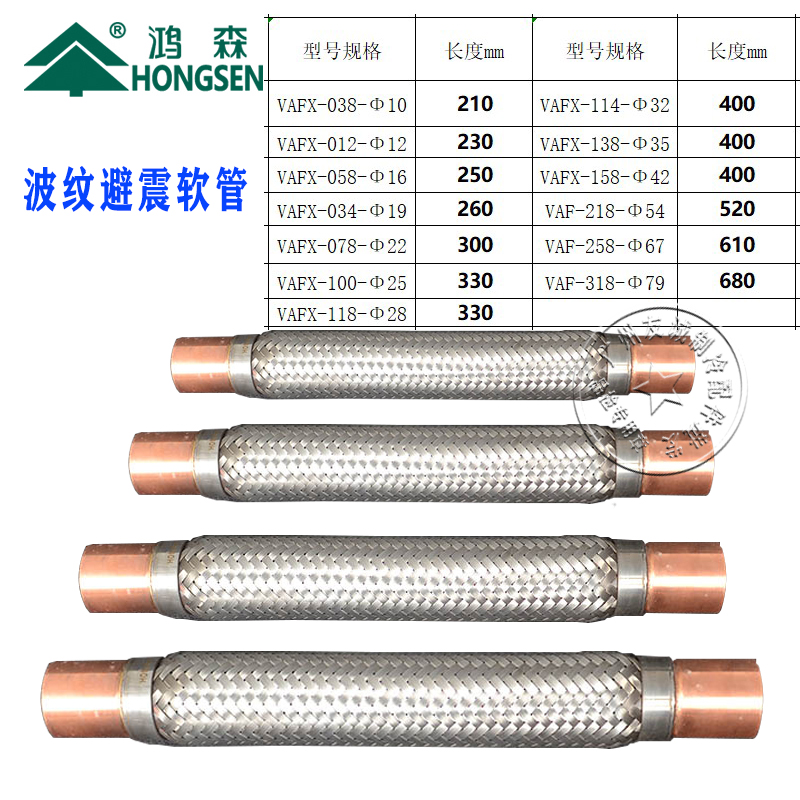 Hongsen VAFX type shock absorber corrugated metal hose Central air conditioning cold storage compressor high temperature refrigeration high pressure shockproof