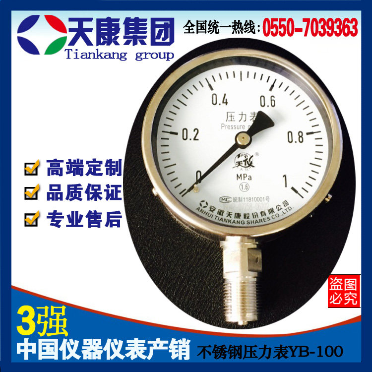 Anhui Tiankang Group stainless steel pressure meter YB-150 oxygen meter vacuum table 304 material