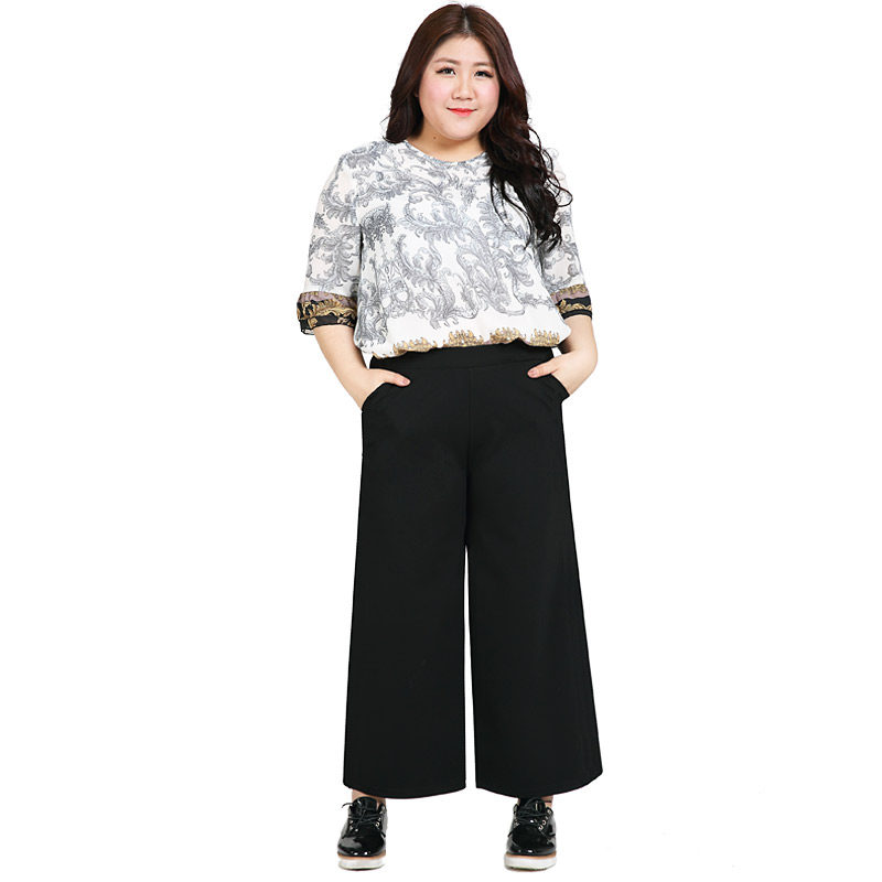 Suitable for hip wide legs thick pants plus fat plus size wide leg pants women Spring fat mm200 kg high waist loose hanging feeling
