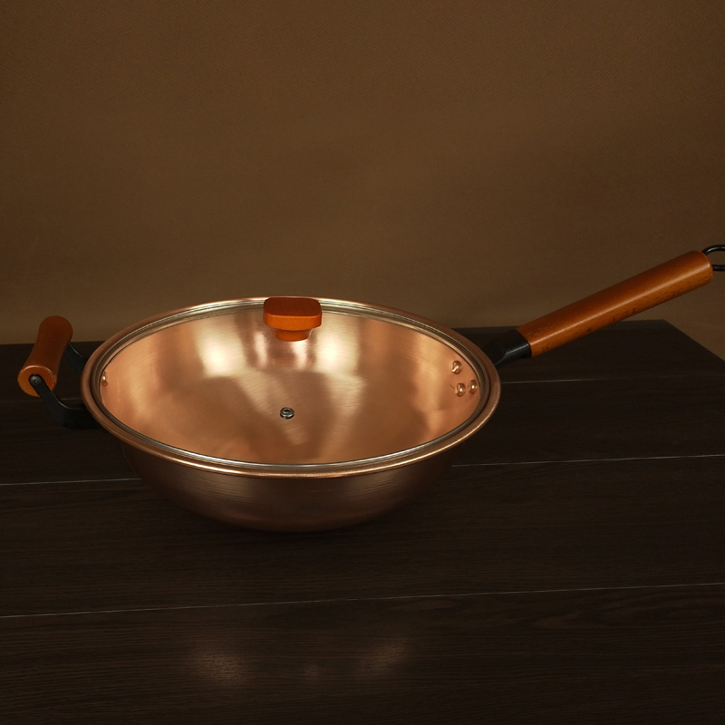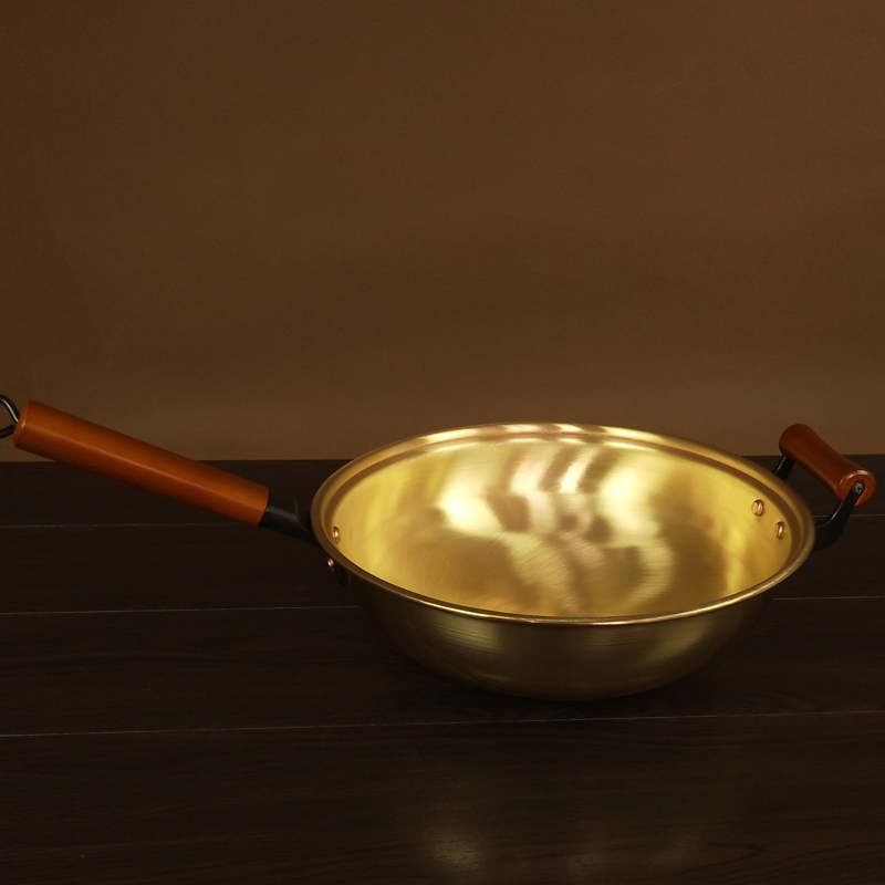Pure copper wok copper pot thickened copper filling kitchenware handmade wooden handle wok brass wok gas boiling donkey hide gelatin