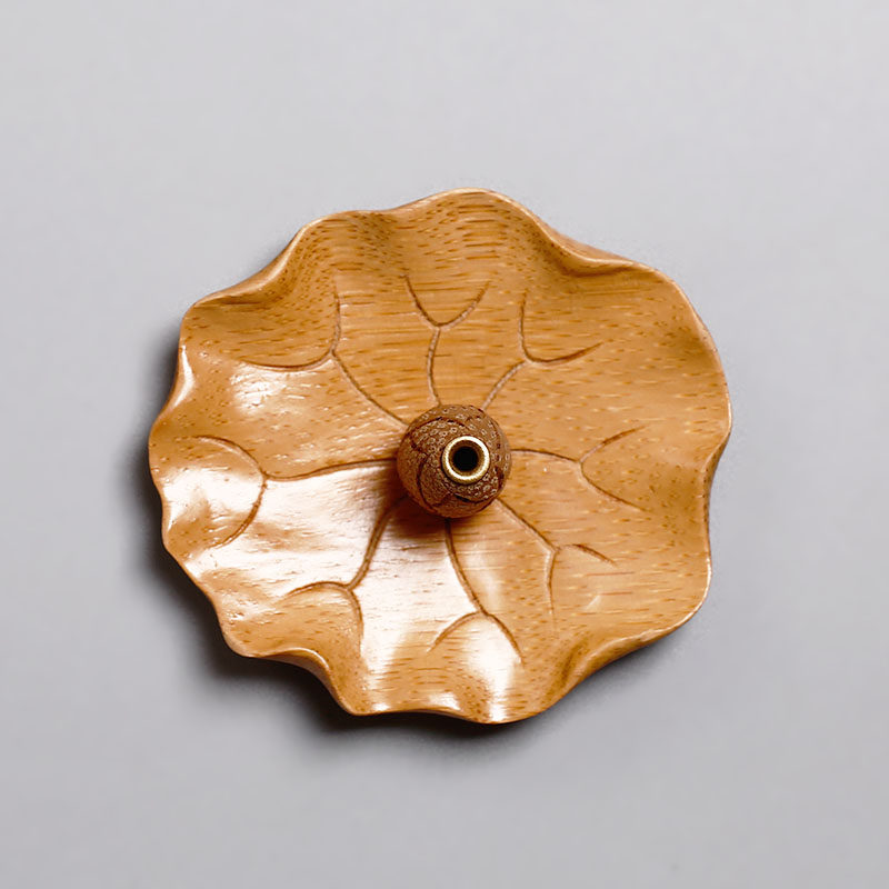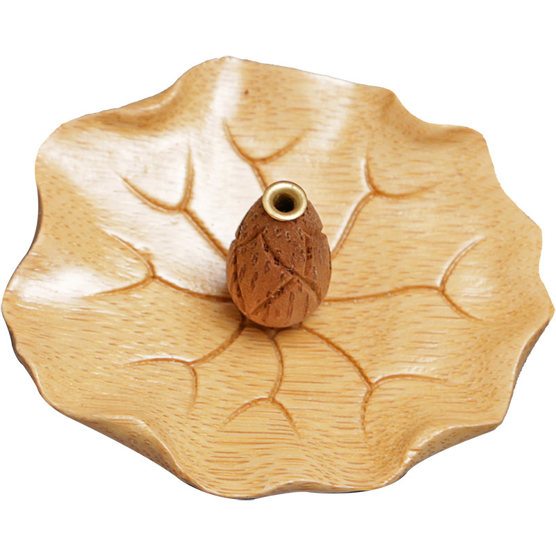 Imitation ancient bamboo carved lotus leaf lotus scented lotus flower scented box incense holder Zen Serve with Chinese style incense palate with incense