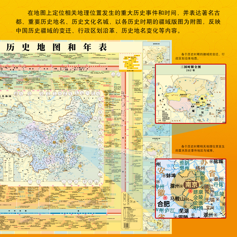 2022 New version of China Historical map and chronograph about 1 2 * 0 9 m matt film Waterproof China History Long River Chart China Historical Map Historical Big Events Students Junior High School High