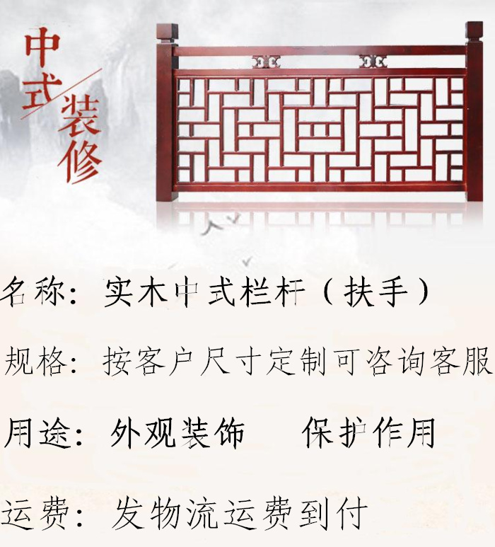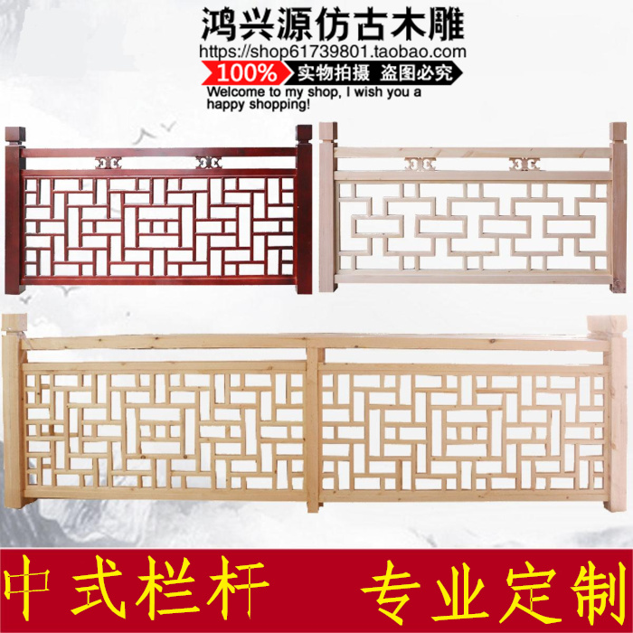 East Yang Wood Carving Chinese Imitation Ancient Furnishing Solid Wood Stairway Guard Rail Armrest Railings Wood Carved Hollowed-out Solid Wood