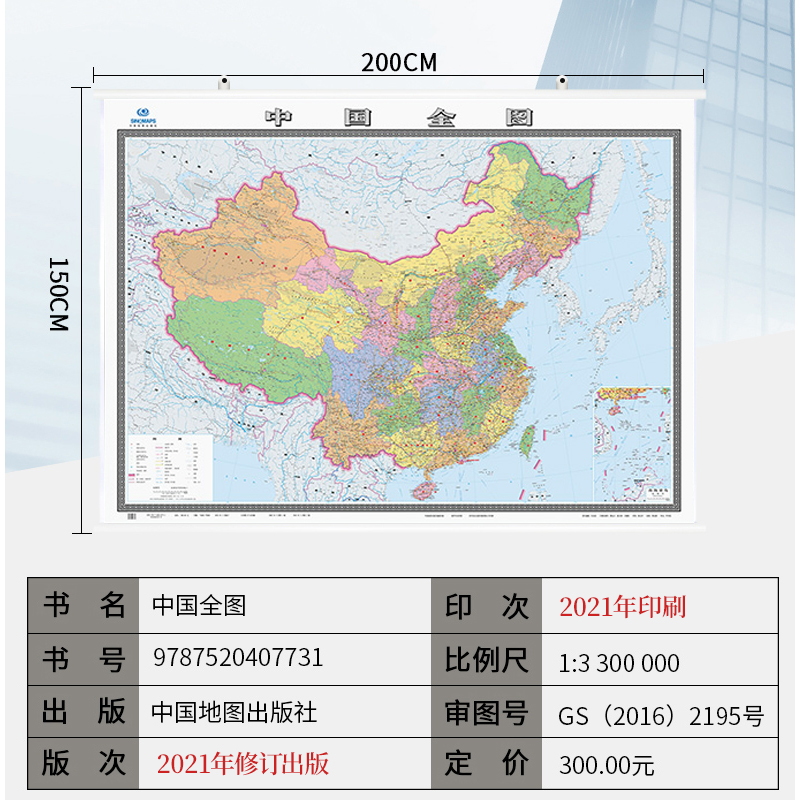 2021 New Edition Super Map Enterprise Edition China Map Flip Chart 2m X 1.5m Super HD Waterproof Laminat Atmosphere Office Meeting Room Exclusive