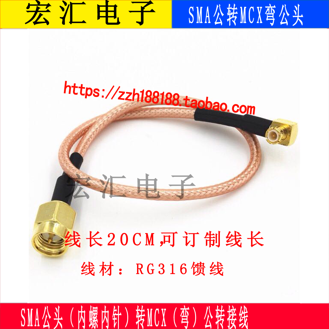SMA to MCX extension conversion line SMA male male pin to MCX curved male connection line RG316 RF cable