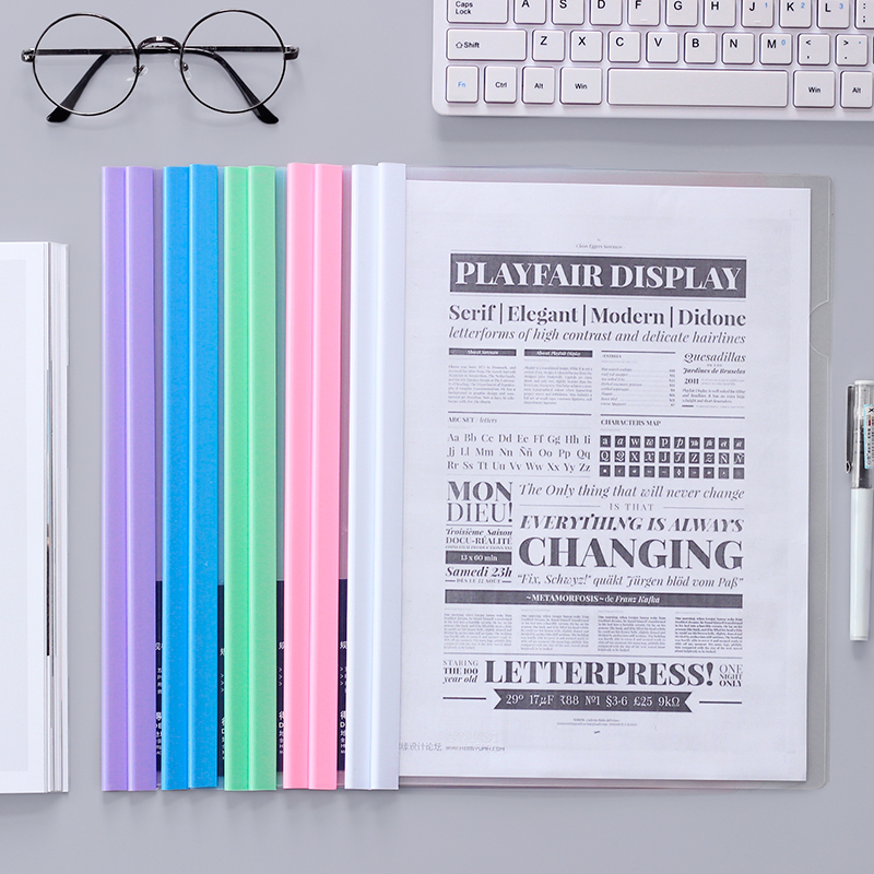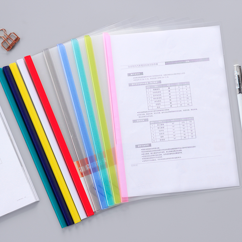 Deli draw bar type folder A4 paper student draw bar clip vertical version small fresh transparent dry rod thickened large capacity matte resume interview Plastic book cover Water drop type data report
