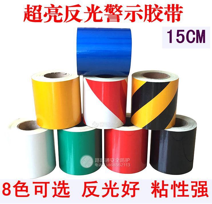 Reflective warning tape 15cm black yellow road traffic film warning tape stick strip ground zebra crossing identification tape