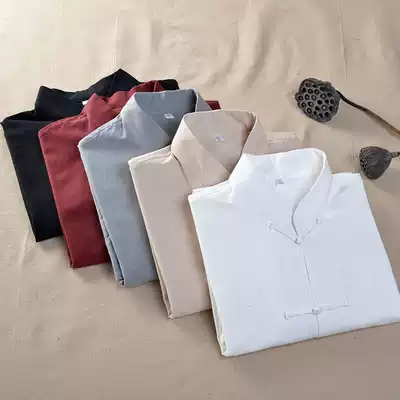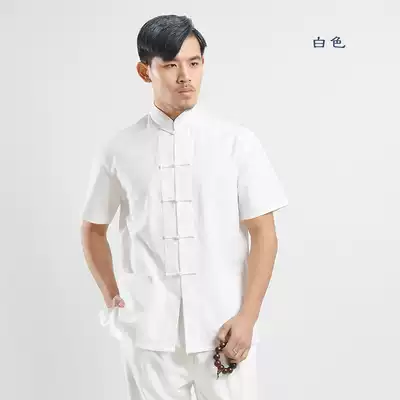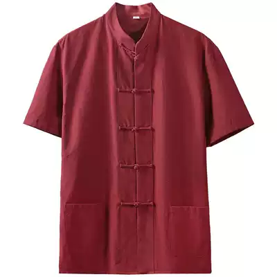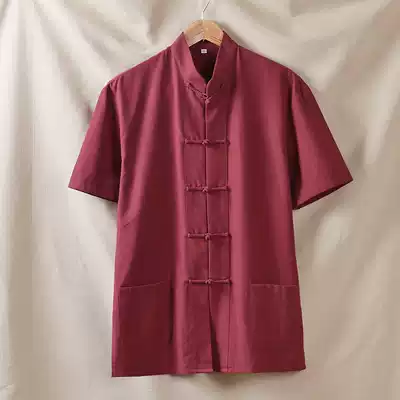 Pure cotton coarse cloth Chinese style collar short sleeve shirt men's retro buckle summer Chinese sweatshirt Old Man shirt
