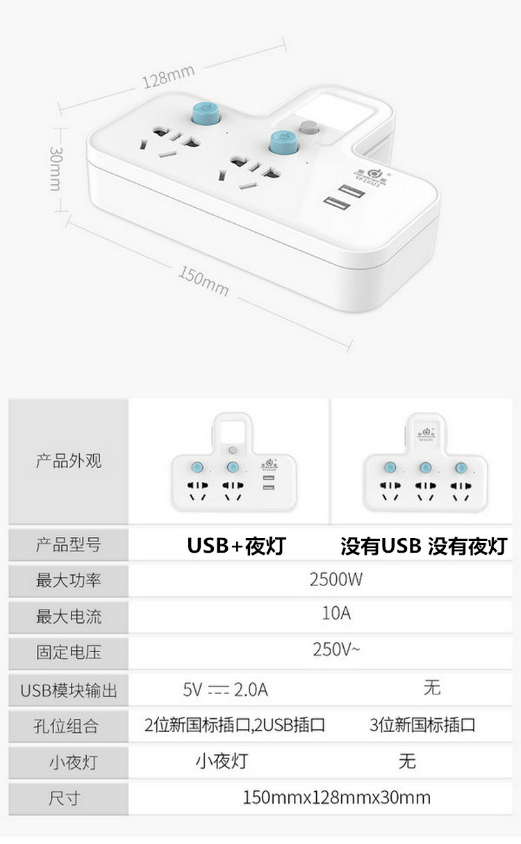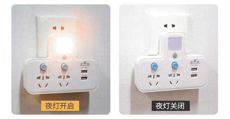 Socket USB plug row Wireless porous night light multi-function converter Home panel intelligent connector Overload protection