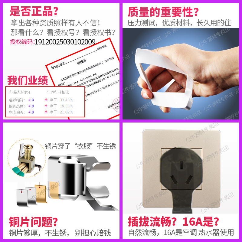 Bull 16A socket 86 Type home 3-hole water heater 16 An wall panel Switch Air conditioning Special three-hole socket