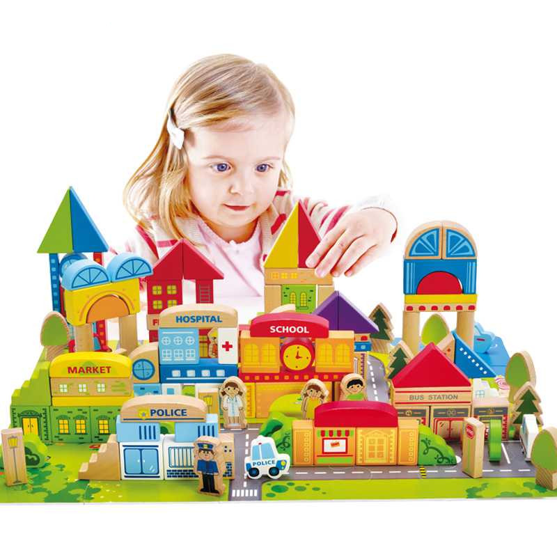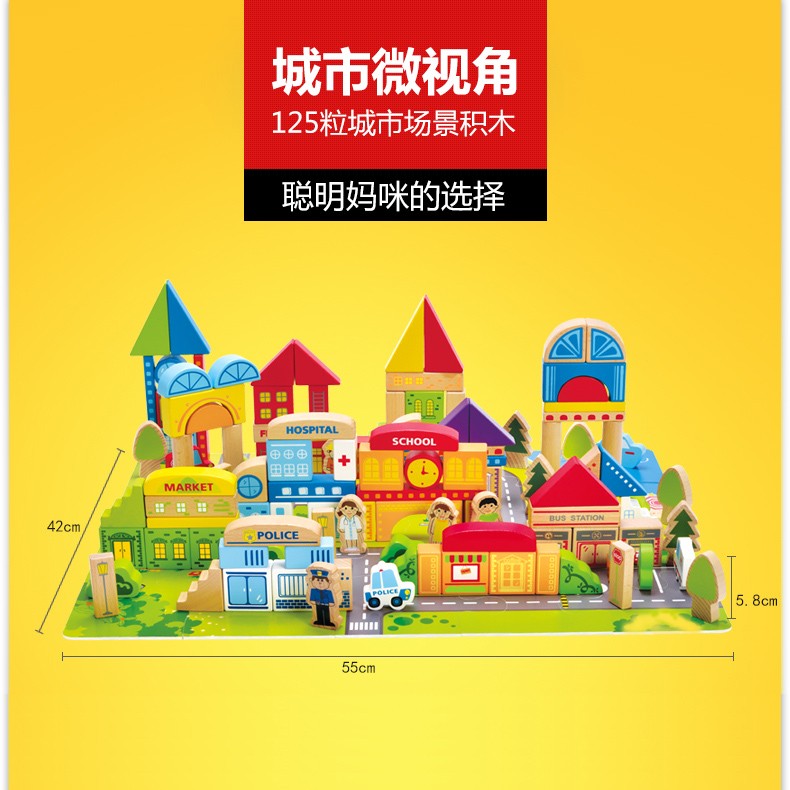 Hape125 city barrels large block of baby baby baby Yi Ji wood assembly toys can be bitten