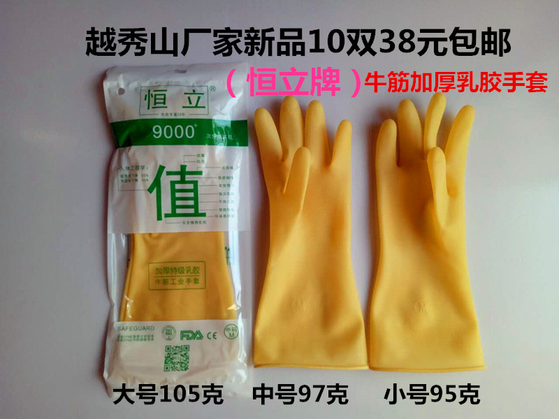 Rubber gloves Yuexiushan latex rubber dishwashing household durable thick beef tendon waterproof gloves acid and alkali resistant