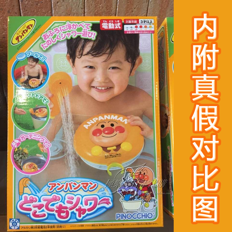 True and false comparison of Japanese bread Anpanman shower baby Children baby bath play water spray shower toy