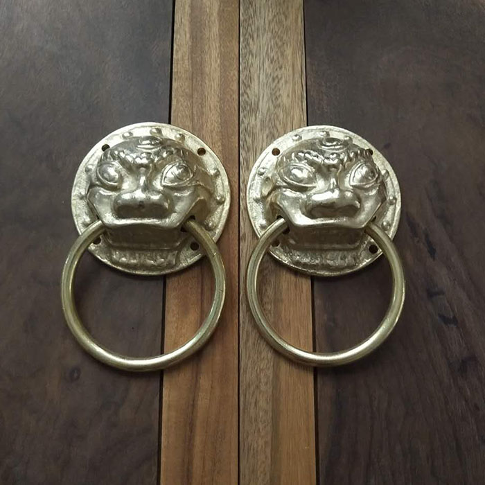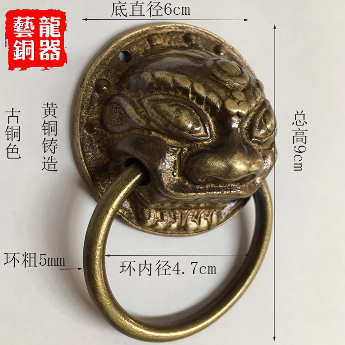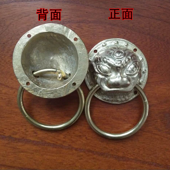 Antique pure copper ring tiger head animal head full copper handle hardware accessories ancient villa wooden door screen door small pull ring