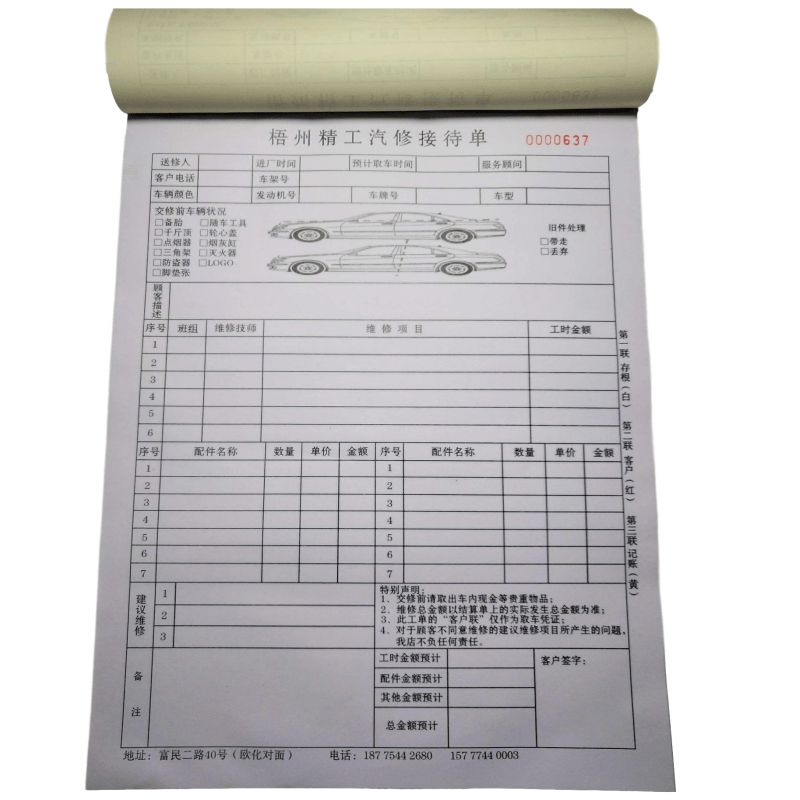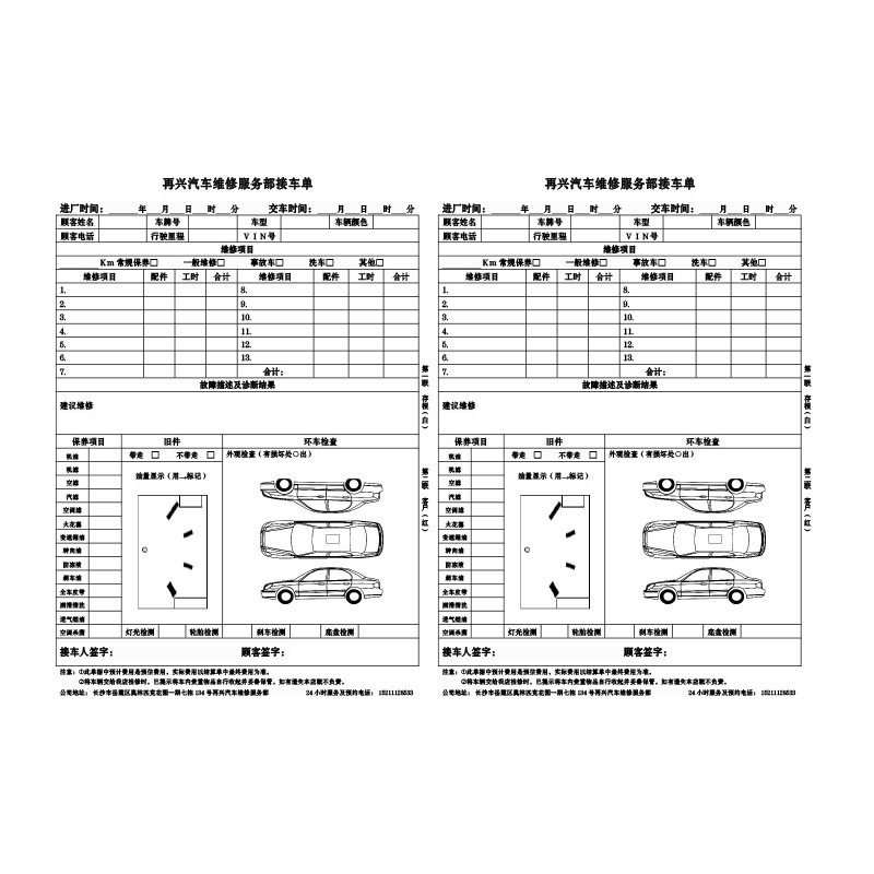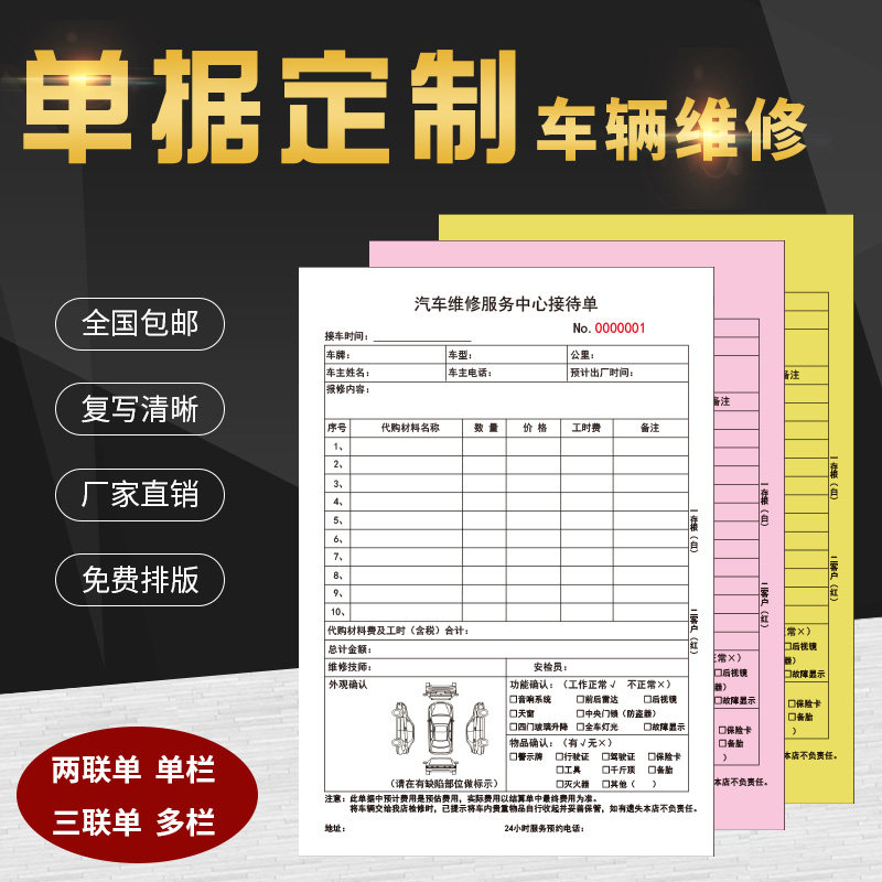 Custom vehicle auto repair repair single Reception single repair shop vehicle car beauty construction Pick-up repair bill