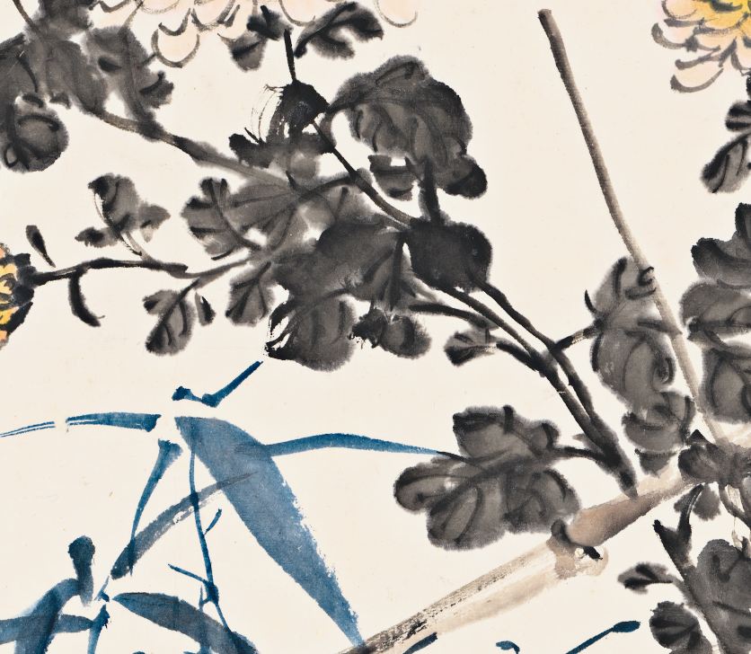Famous painting art micro-spray decorative painting heart Deng Huainong Phoenix bamboo autumn chrysanthemum picture 44x81cm paper