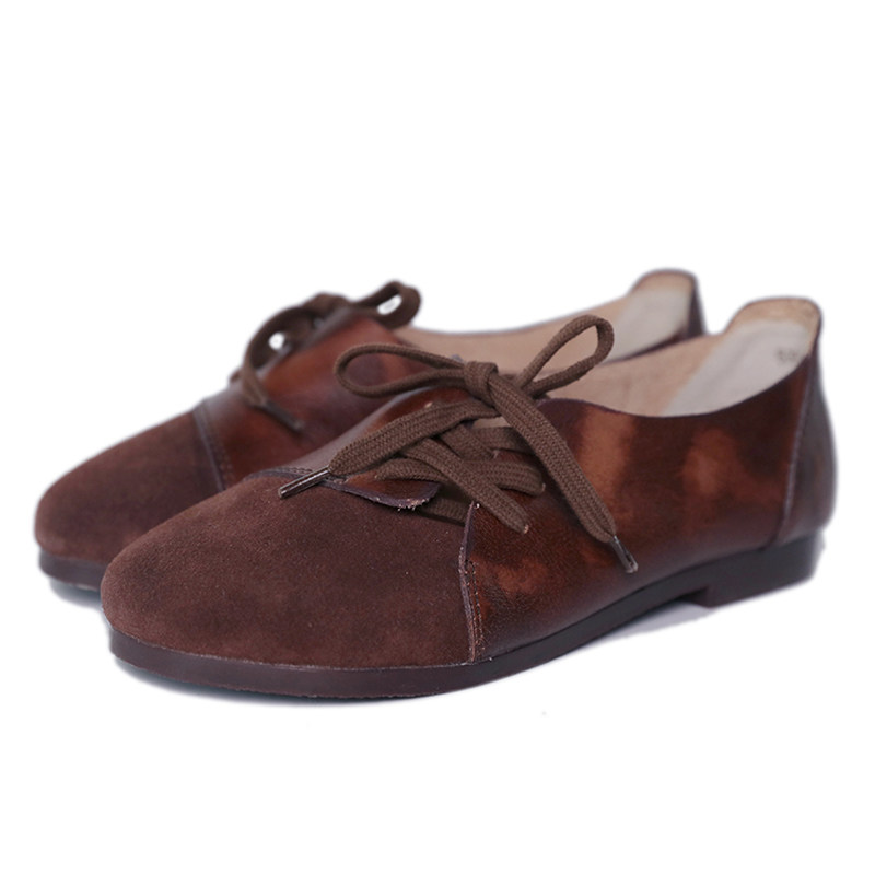 Detox home traditional new ideas spring and summer cowhide single shoes women's lace-up low-heeled soft bottom soft leather leather Sen women's shoes spring