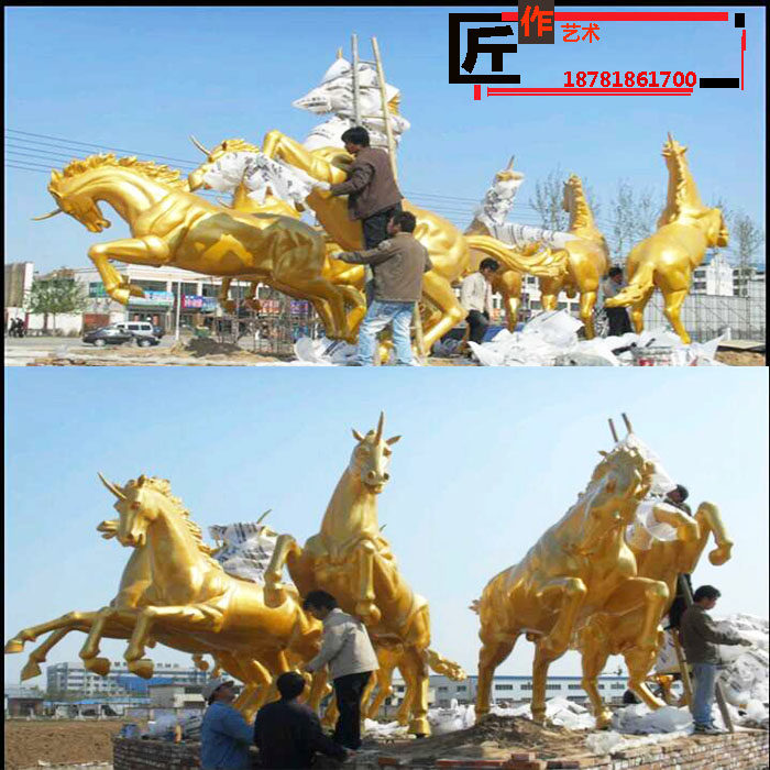 European-style Apollo chariot golden horse animal figure FRP sculpture commercial street sales department ornament customization