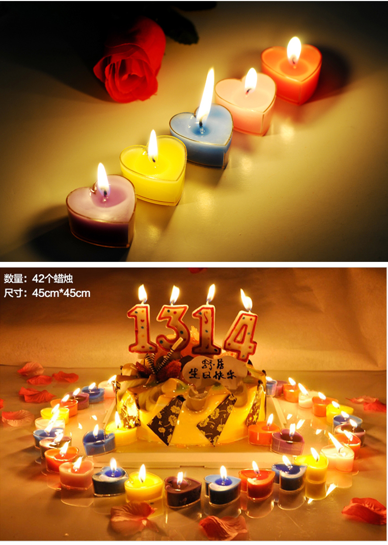 25 25 purple heart-shaped candles 25 only blue heart-shaped candles 25 only yellowish heart-shaped candles 25 only red heart-shaped candles 25 pink heart-shaped candles 5 only mixed 10 only mixed 25 only mixed