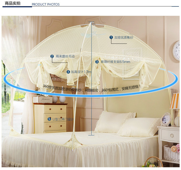 Heightened yurt mosquito net 1 5m 1 8m fully surrounded by zipper double three-door mosquito net baby anti-fall mosquito net