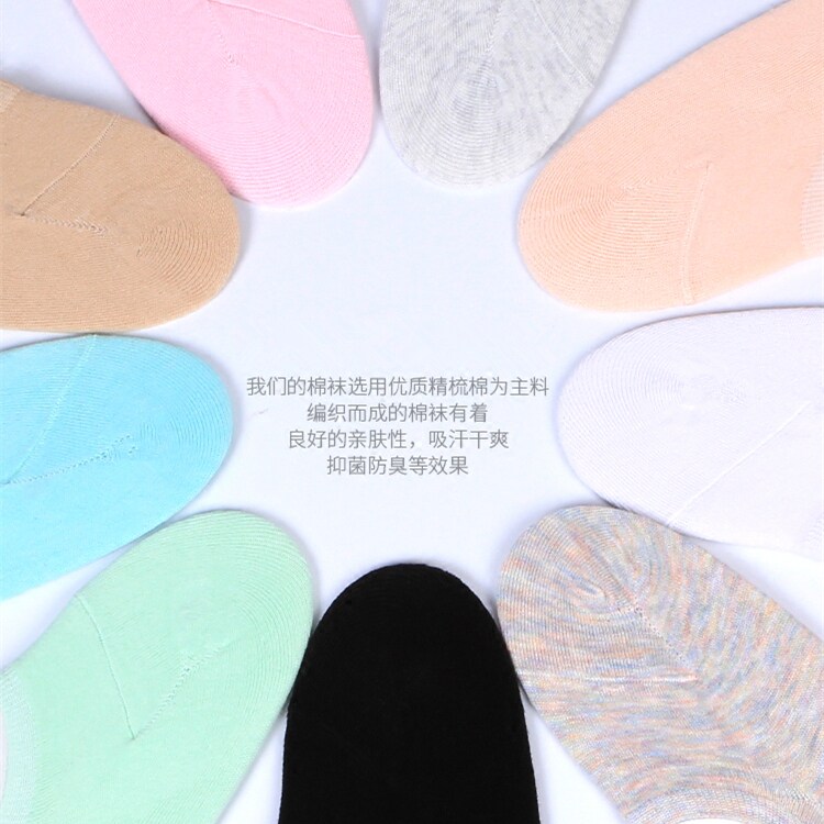 Summer invisible socks Women's non-slip silicone low-top shallow mouth candy socks Thin socks Pure cotton socks Women's boat socks