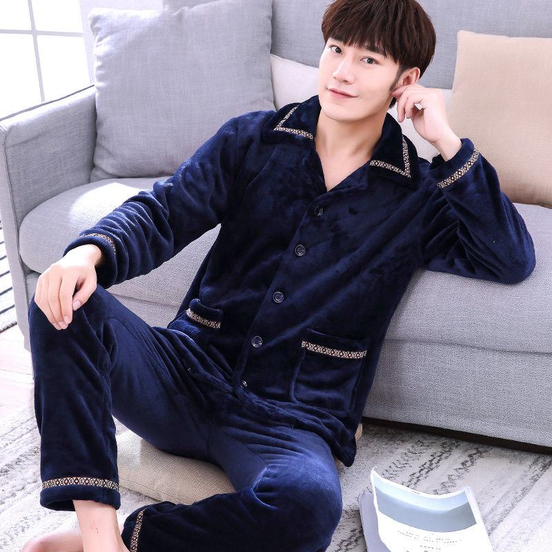 Autumn Winter Thickened Flannel Sleepwear Male Middle-aged Cardiovert Long Sleeve Plus Suede Warm Coral Suede Men Suit Large Size