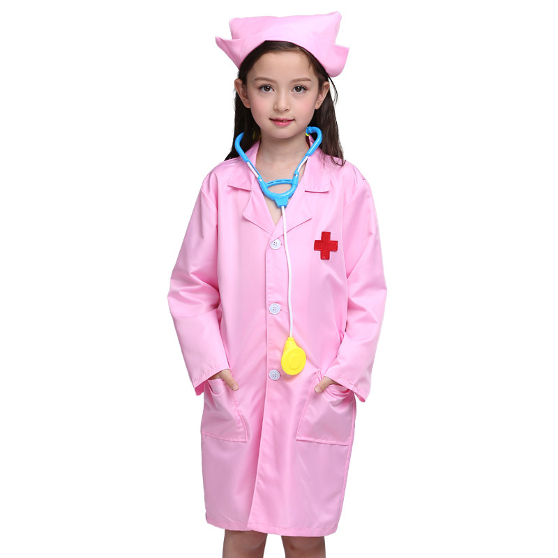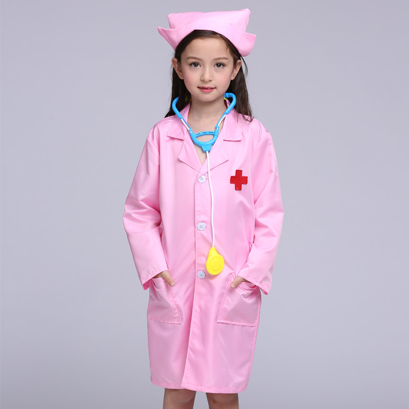 Children's small doctor's nurse Costume Kindergarten career plays a performance dress for a family wine white coat with a dress