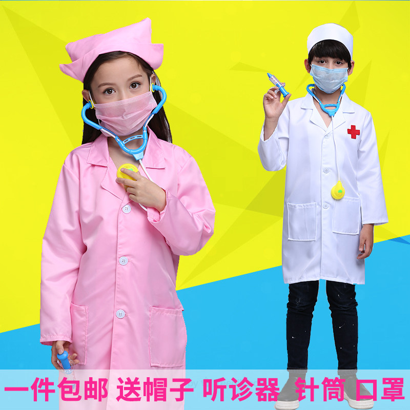 Doctor's clothing Cap Mask Syringe stethoscope Color Pink or Blue stochastic hair care Cap Mask Syringe stethoscope Color Pink or Blue stochastic haircare Coat Wear hat (no.