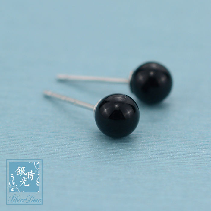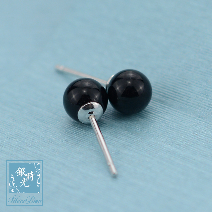 Silver Time S925 Sterling Silver Earrings Black Fruit Shell Bead Ball Earrings Creative Fashion Personality Temperament Earrings Women
