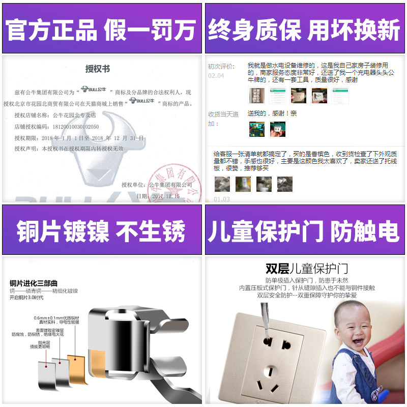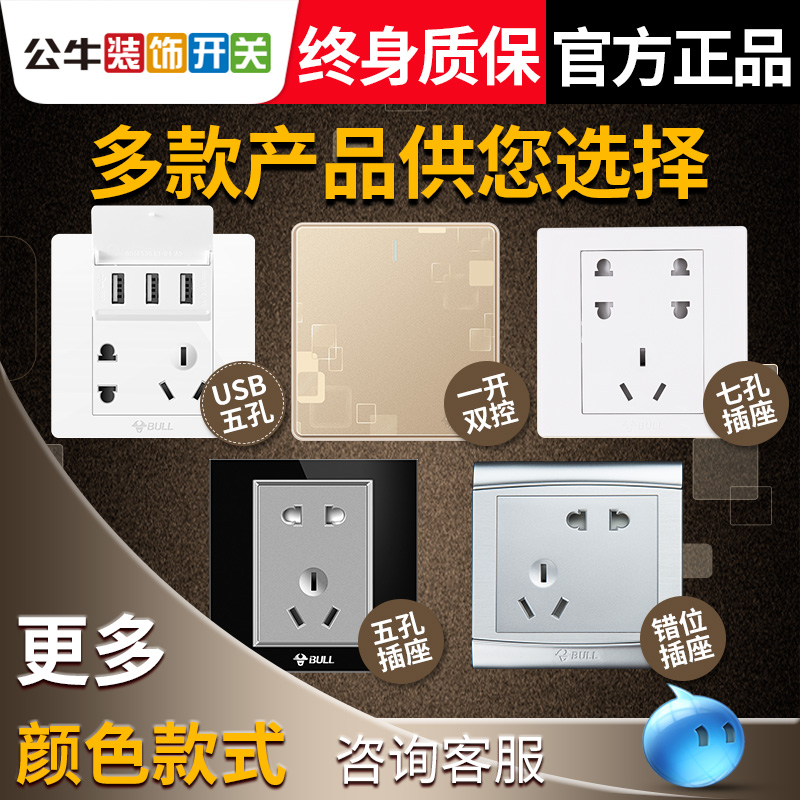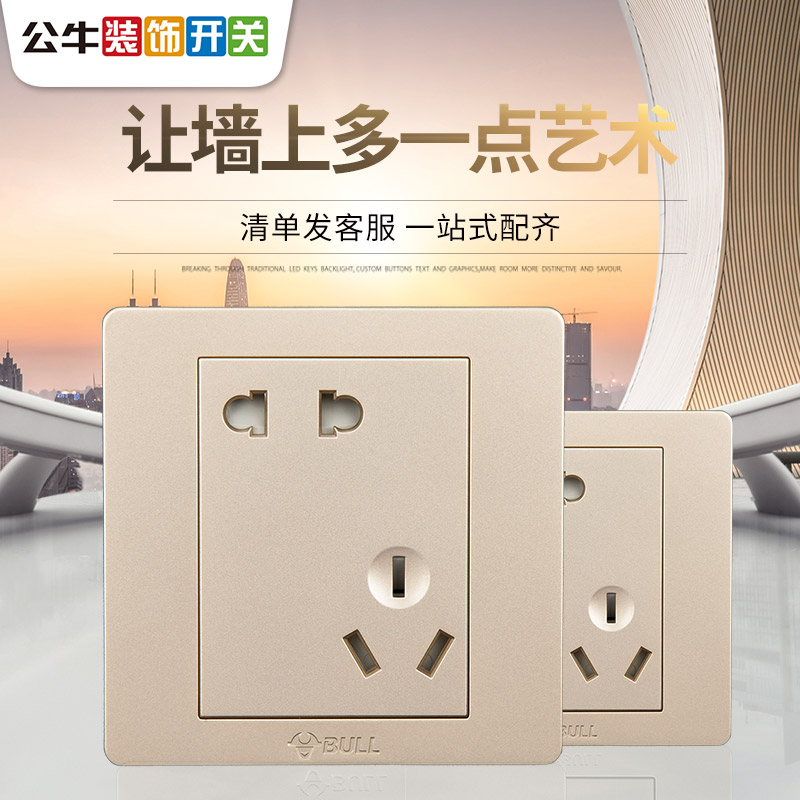Bull switch socket panel misalignment 5 holes five holes wall household national standard oblique five eyes two three plugs Champagne gold