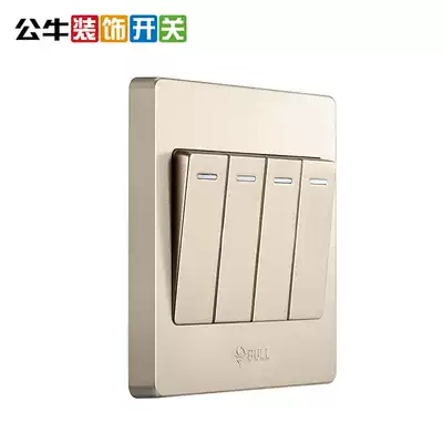 Bull four open double cut switch panel household wall concealed electric light 4 open quadruple 16a high power champagne gold