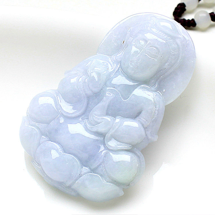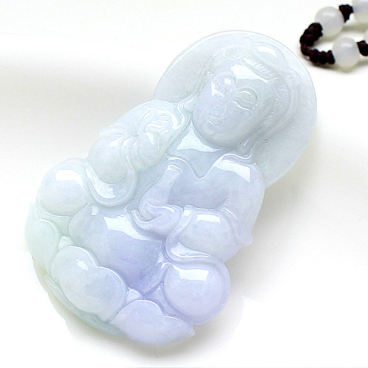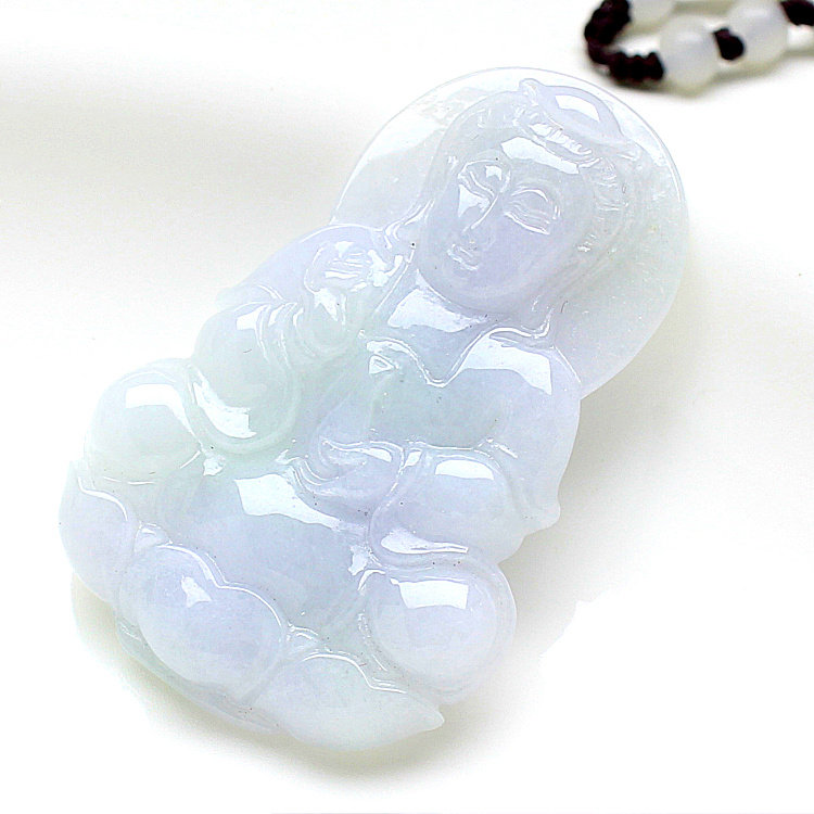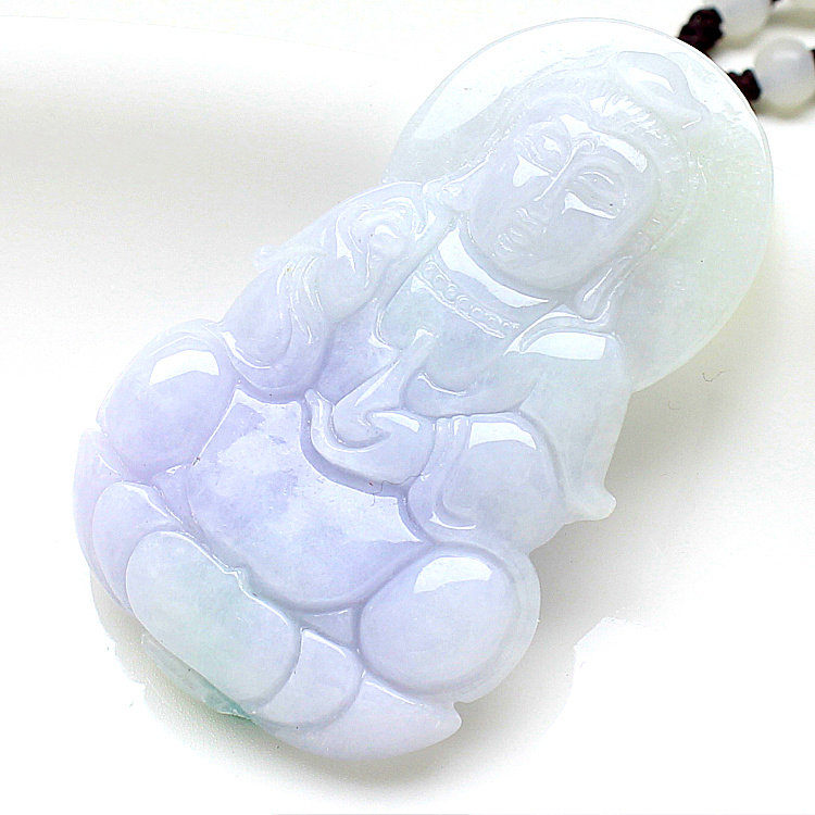 Natural Purple Rolan Color Emerald Jade Guanyin Pendant Pendant male and female Jade Guanyin jade Ice glutinous seed Guanyin with certificate
