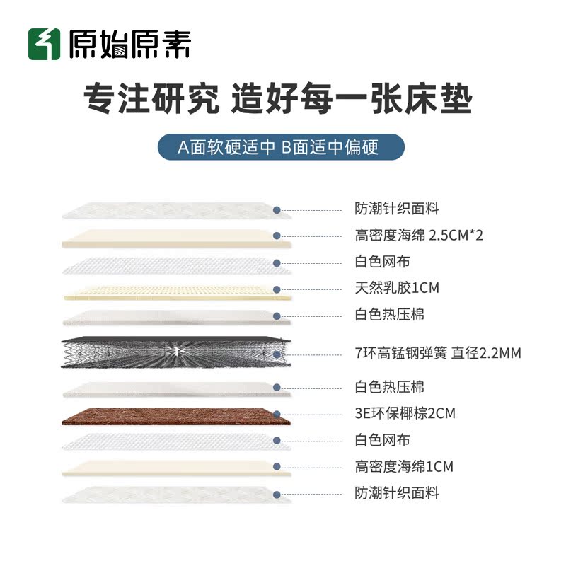 Original element 3E coconut palm natural latex mattress 7 ring spring zero formaldehyde Simmons soft and hard sides with C8202