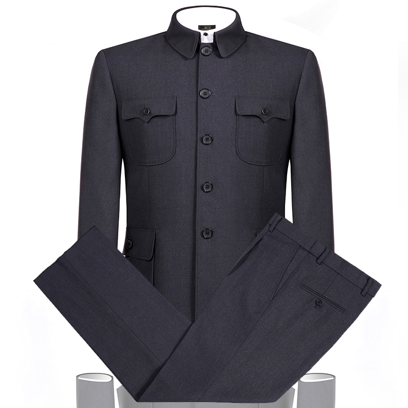 Middle-aged Zhongshan clothing suit men's spring and autumn, elderly men's style turned-collar Zhongshan clothes dad's grandfather's clothes