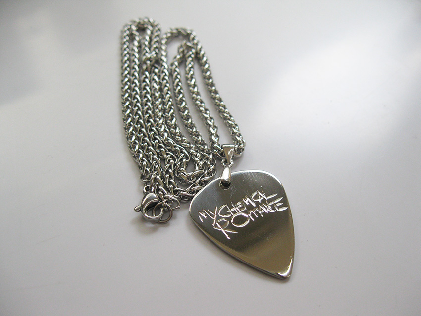 my chemical romance my chemical romance hand-engraved guitar paddle necklace custom